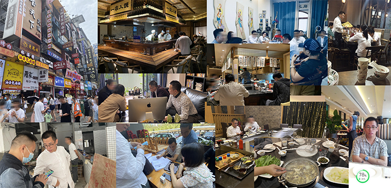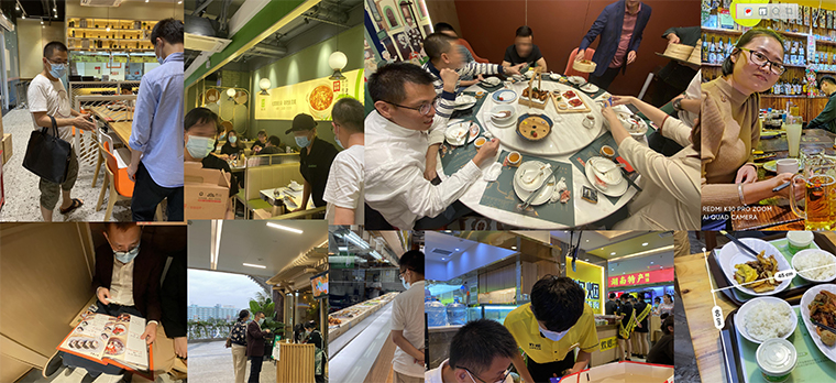 還好蘩樓團(tuán)隊(duì)能理解我們的工作模式,認(rèn)同我們的設(shè)計(jì)理念,尊重我們的作業(yè)流程。在我們?yōu)槠诎雮€(gè)月的市場(chǎng)調(diào)研及廣式茶樓同行,出產(chǎn)地廣州西關(guān)走訪后,才有了明確的定位人群,模式定位,出品特點(diǎn),服務(wù)形式等初步的框架認(rèn)識(shí),才逐步對(duì)蘩樓的品牌歷史形成基本的認(rèn)知,這時(shí)再進(jìn)行“頭腦風(fēng)暴”表達(dá)各自設(shè)計(jì)看法才更有了更多實(shí)際依據(jù)。隨著項(xiàng)目推進(jìn),與甲方的不斷溝通交流,持續(xù)的學(xué)習(xí)相關(guān)知識(shí),我們才逐步提煉出品牌獨(dú)有的視覺語(yǔ)言,并把對(duì)品牌的理解進(jìn)行轉(zhuǎn)譯,形成了視覺語(yǔ)言應(yīng)用如:標(biāo)志符號(hào),品牌故事,VI視覺、海報(bào)菜單及品牌的空間形象實(shí)體呈現(xiàn)。