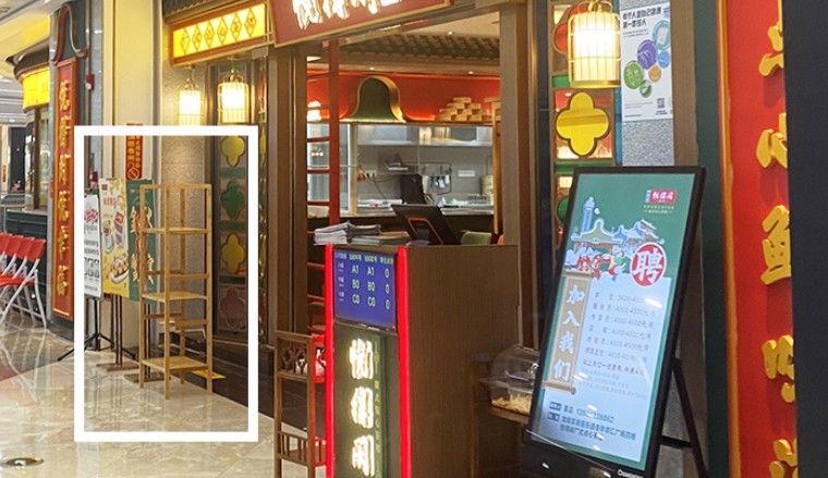 C外賣取餐區。設置在門面顯眼的位置,方便外賣小哥迅速取餐,且不會與進店用餐的顧客產生沖撞。外賣取餐臺的設計應該與整個門店裝飾風格一致,也是品牌形象的一個小窗口。
