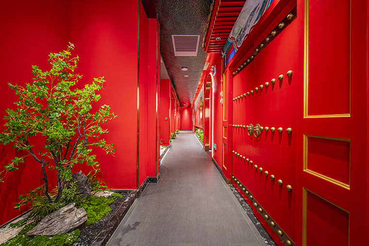 比如品深全案設(shè)計深度服務(wù)的京味張烤鴨店,在門店中大量使用中國紅強化品牌內(nèi)蘊的北京故宮皇城文化,令人印象深刻;門口的迎賓人,提籠遛鳥人,跑堂人等雕塑銅人將老北京烤鴨飲食文化自然帶出,別有情趣;空間墻面中使用大幅北京故宮的高精度畫面,配上與烤鴨美食相關(guān)的經(jīng)典詩詞。整個餐廳的
