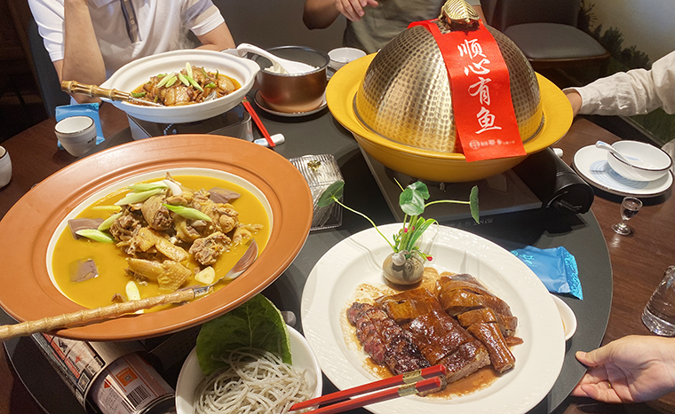 深圳的祿嬸雞煲餐廳,有一道特色菜叫做冬瓜盅花膠雞,湯鮮味美,非常好吃。每次用老冬瓜盅盛的花膠雞上桌煮開后,服務(wù)員圍成一圈,齊聲用粵語大喊:撈起撈起,撈得風(fēng)生水起。非常有儀式感,外地人基本聽不懂這句粵語,但能感知出是吉祥祝福話,顧客覺得非常有趣,也很自然就記住了品牌。這與單純菜品好吃很不一樣,在菜品中加入民俗文化,