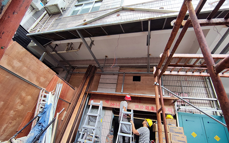 玉椿燒鳥居酒屋首店位于深圳的餐飲網(wǎng)紅高地——車公廟十畝地正對面。門店之前是一家中餐的后廚的全部空間及部分包間,其中一半的面積屬于上一家餐廳自己搭建的二層??臻g結(jié)構(gòu)非常復(fù)雜,地面高地不平,尤其是搭建部分的1層,2層實際高度不到2.5米,心理感受很逼窄,這個場地極為考驗品深項目團隊中空間設(shè)計師的功力水平。