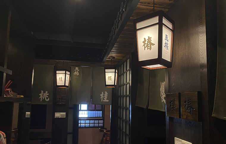 店內(nèi)的各種吊燈也是日式最經(jīng)典款式,在日本江戶時代是町家所用的,與品牌整個格調(diào)默默相融。吊燈上我們打上了日本六大名花:椿、櫻、桃、桂、梅、菊。既起到識別作用,又增強了品牌的文化底蘊。