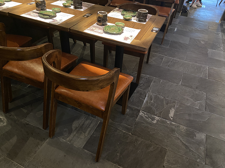 4、二樓6個包間,沿著精致的實木踏步樓梯上到二樓,青石板樓道,白色鵝卵石間隔,墻面用實木炭黑色的護(hù)墻板包裹裝飾,吊頂?shù)脑举|(zhì)感,典型的日式家居風(fēng)格。當(dāng)很多女性消費者穿著和服,踏著木屐,捧著玉椿美食,依靠在移門上,端坐在臺階前自拍發(fā)圈分享時,玉椿品牌很快就廣為人知了。
