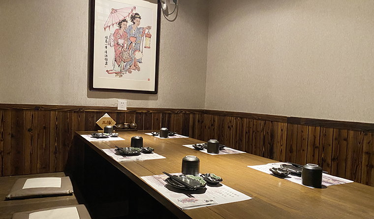 1樓是熱鬧區(qū),二樓則是私密區(qū),安靜區(qū),6個包間,其中3個包間設(shè)置為榻榻米結(jié)構(gòu),滿足一部分顧客對日本料理飲食文化的追求,另外3個包間則使用了中式座椅,畢竟我們服務(wù)的絕大部分客人是中國人,還是要以中國人的使用習(xí)慣為主。2樓的2個大包間中間使用折疊門,可大可小,可以滿足了周邊客人中一些商務(wù)宴請,企業(yè)團建,小型會議的用餐需求,包間消費也容易把營業(yè)流水做起來。