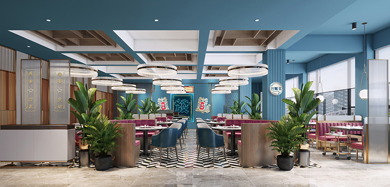 空間設計亮點:我們餐廳的整體氛圍應該輕奢且品質感很強;熱鬧卻不喧囂,精致有特色但容易讓人親近!整個餐廳的色彩以暖色調的不銹鋼金色為主,凸顯火鍋的用餐熱鬧,同時也讓顧客更容易親近,柜體運藍色表達出鮮明的港式風格,同時也點明我們海鮮火鍋的特色。